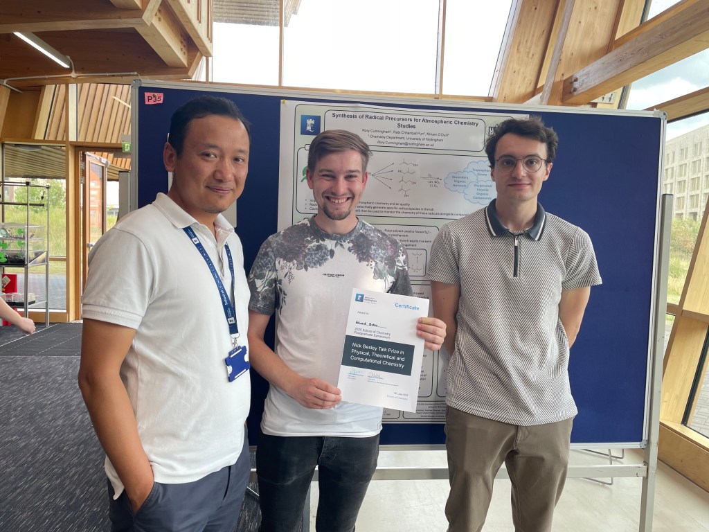The annual UoN School of Chemistry PGR symposium took place in mid July. Ed presented a talk and Rory presented a poster. Ed’s presentation was awarded the best talk within the physical section!